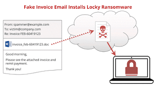 The victim receives an email that requests payment on an attached "invoice", usually a Word file. The attachment contains some sort of executable code, like a VBA macro, that downloads the actual malware from a web site and runs it, encrypting the data on the victim's local and networked hard drives. It then displays a screen that demands a ransom to decrypt the data.